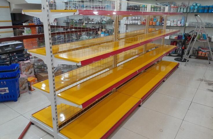 - Produk berat (minuman kemasan, kaleng, deterjen): Pilih rak berbahan besi dengan ketebalan yang cukup dan struktur penyangga kuat.